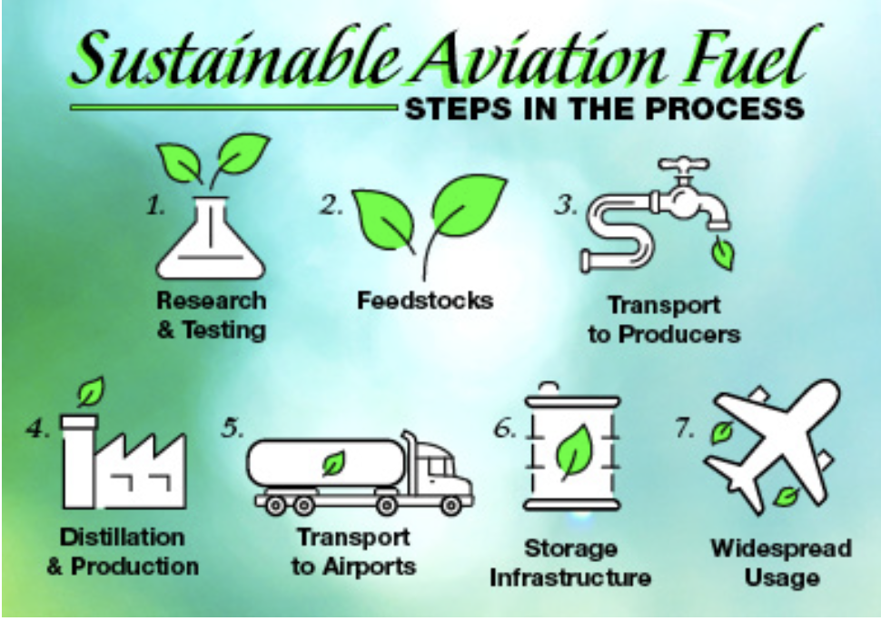 Sustainable aviation fuel (SAF) is an alternative fuel made from non-petroleum feedstocks that reduces emissions from air transportation. SAF can be blended at different levels with limits between 10% and 50%, depending on the feedstock and how the fuel is produced. According to the International Civil Aviation Organization (ICAO), over 360,000 commercial flights have used SAF at 46 different airports largely concentrated in the United States and Europe.